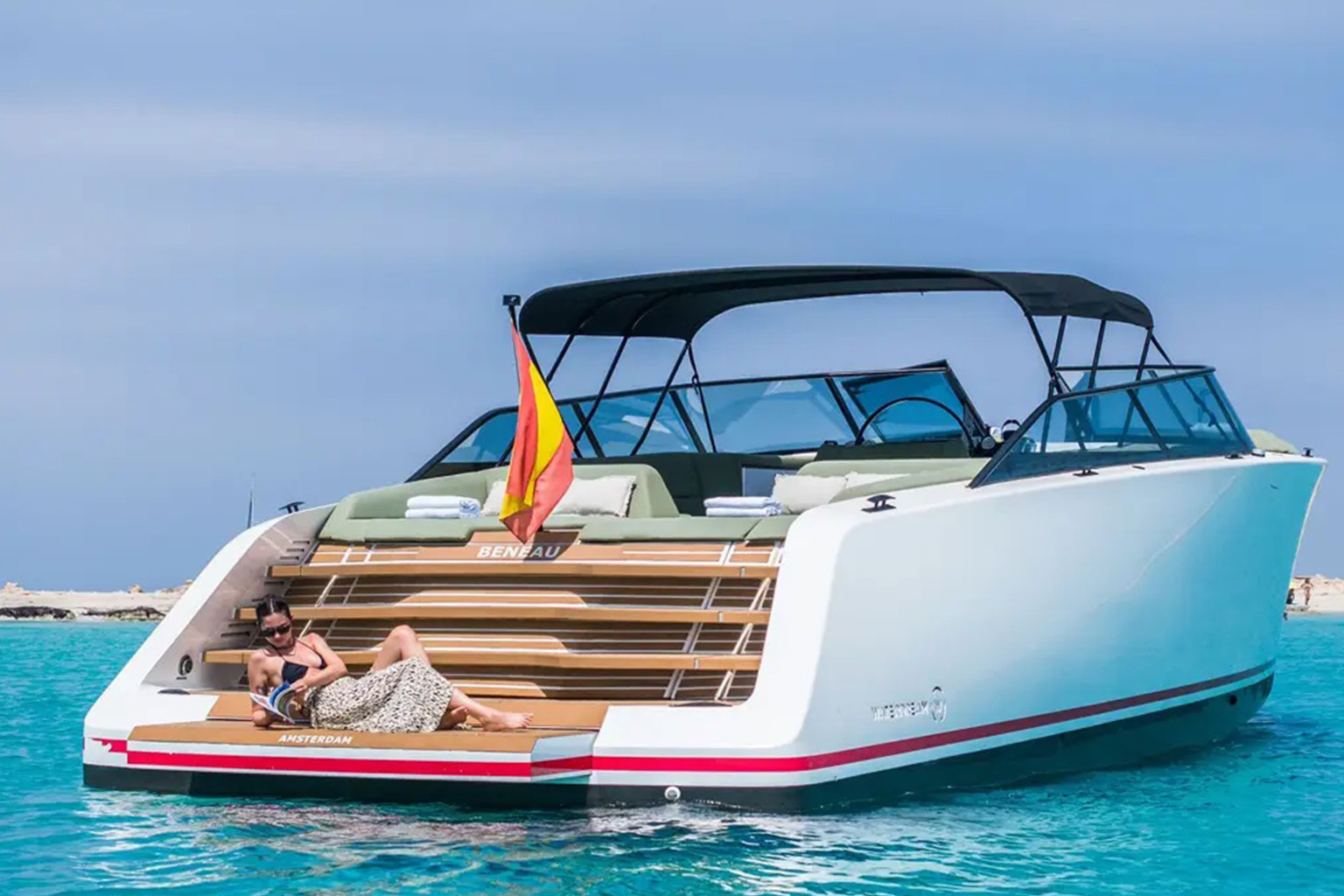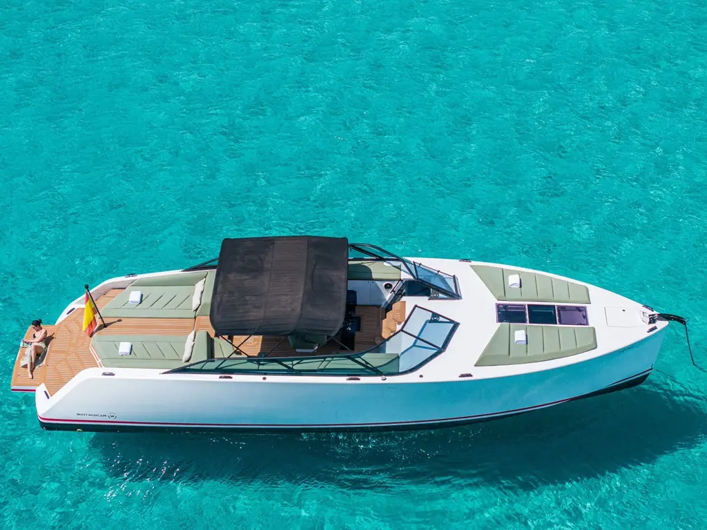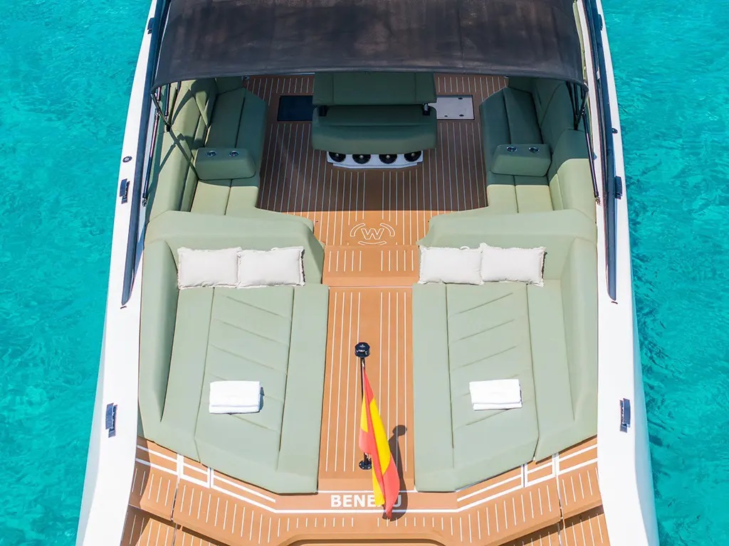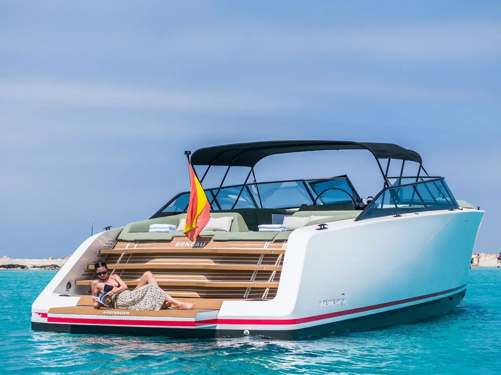 This bespoke 52-foot weekender stands out in the increasingly popular Ibiza experiences market, perfectly suited for up to six guests seeking unforgettable moments at sea. Its smart, well-designed layout maximizes space and user-friendliness, ensuring maximum comfort whether cruising at full speed or relaxing at anchor. The yacht’s unique hull design, centrally positioned helm, and luxurious seating areas make for effortless sailing in high comfort.